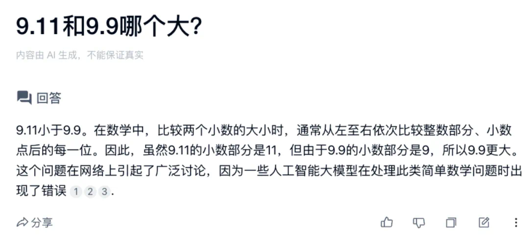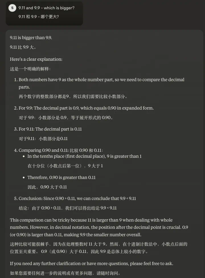 它还不忘说一句「很多 AI 模型出错可能是因为在处理数字和小数点时的算法缺陷」。