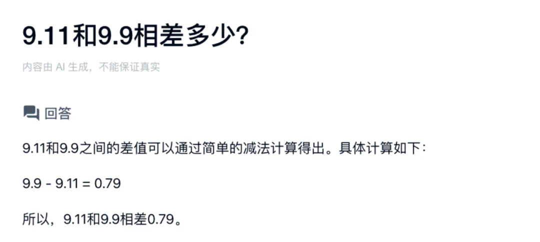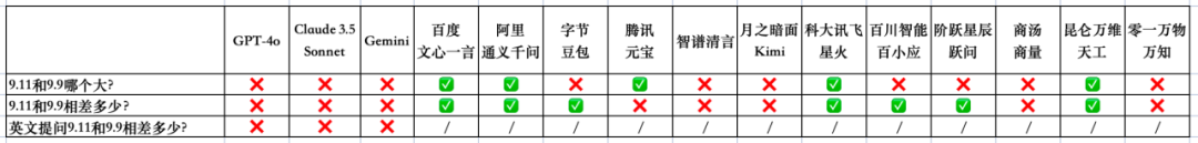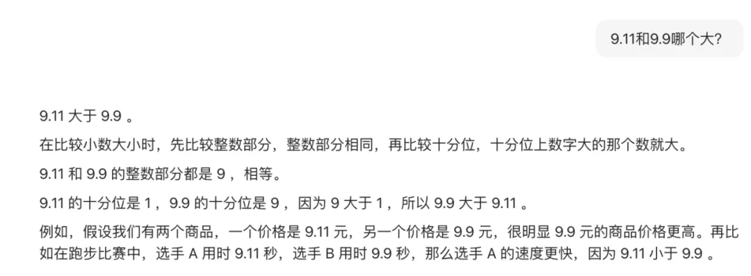 文章来源于互联网:9.11和9.9谁大?我们实测15个大模型,超半数翻车