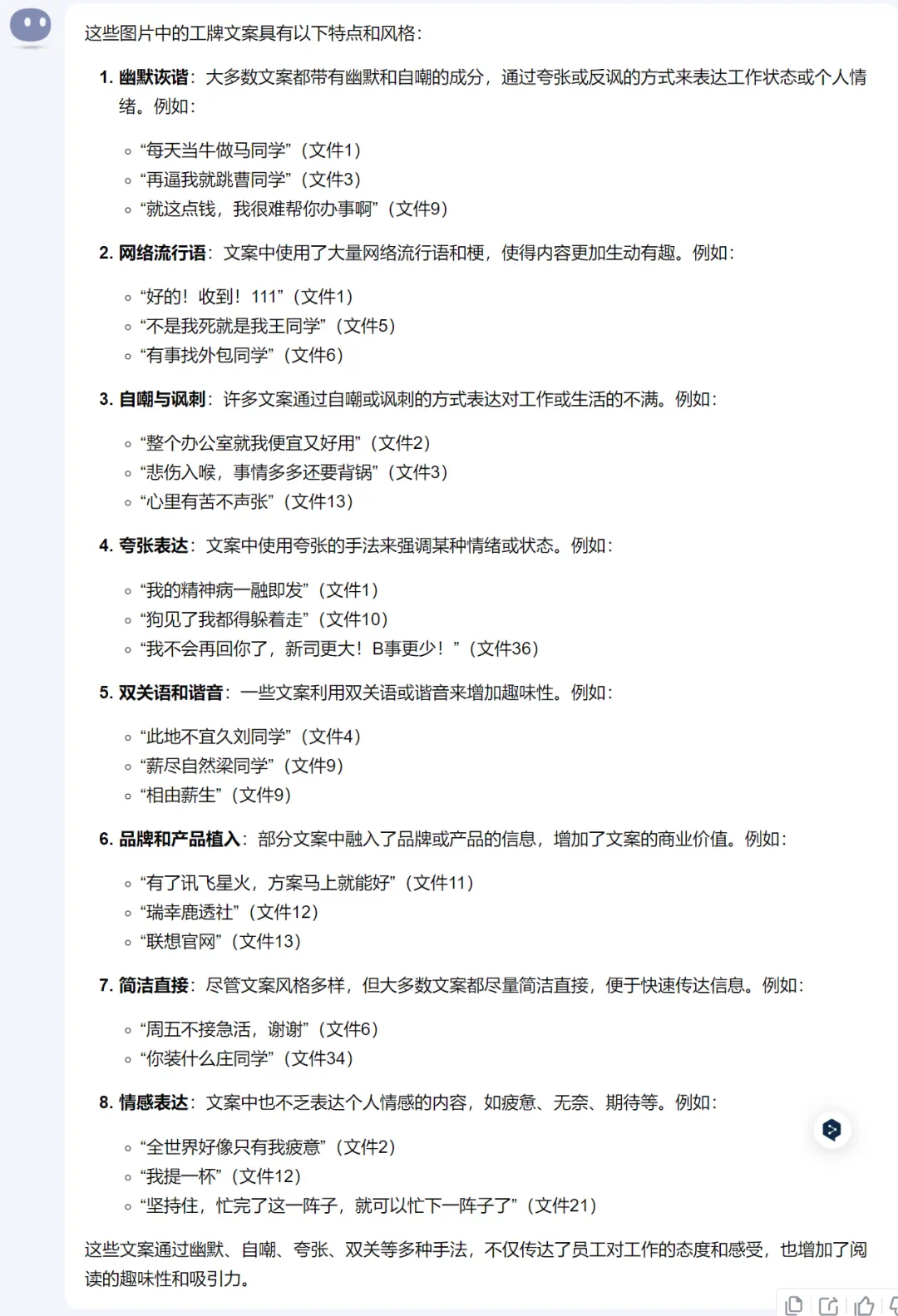 首先,让 Kimi 分析一下这些文案的风格和特点。