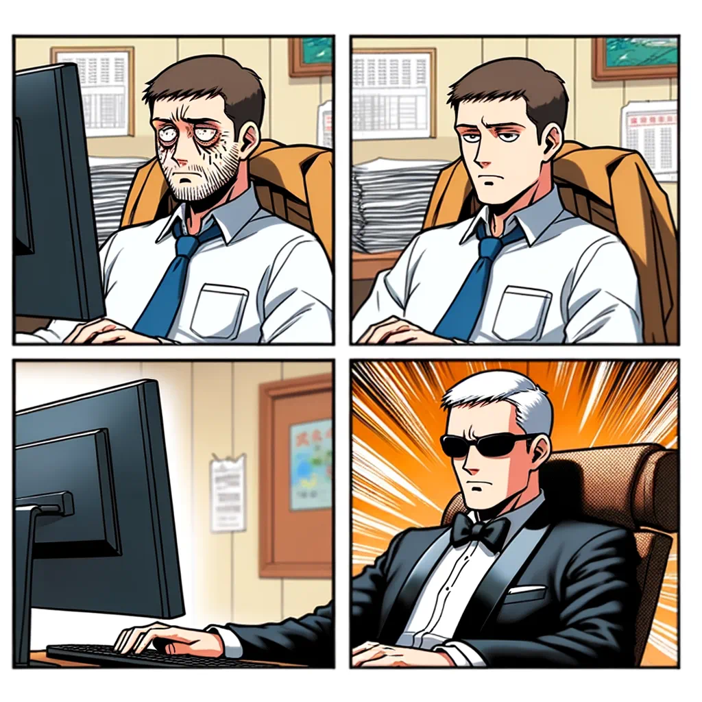 「别叫我打工人,叫我007号特工」为这句文案生成一张梗图,给出可能的提示语。