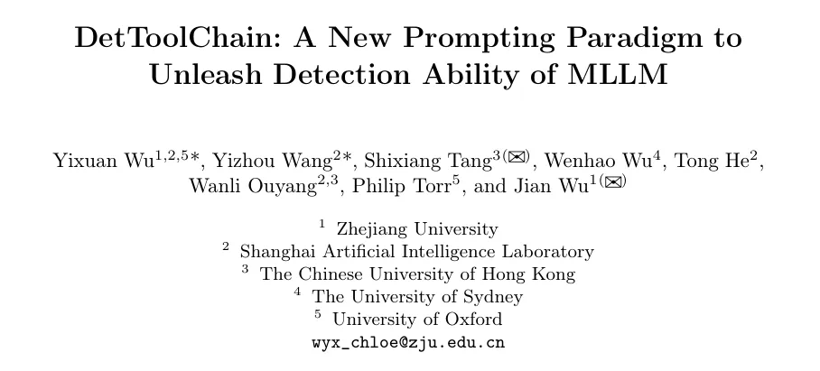 论文标题:DetToolChain: A New Prompting Paradigm to Unleash Detection Ability of MLLM -