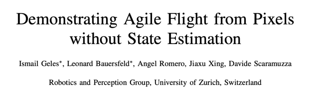 论文标题:Demonstrating Agile Flight from Pixels without State Estimation