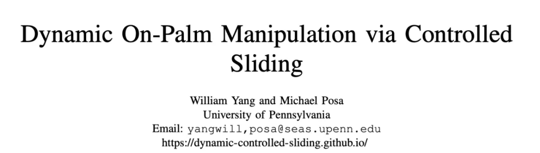 论文标题:Dynamic On-Palm Manipulation via Controlled Sliding