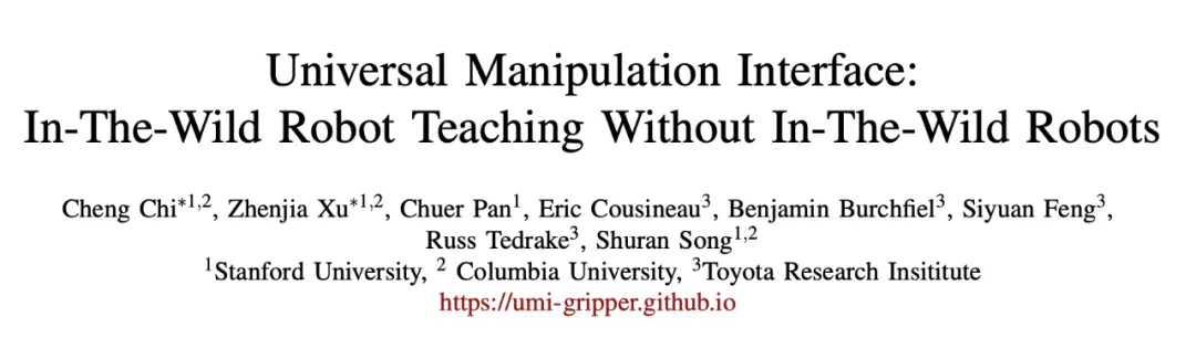 论文标题:Universal Manipulation Interface: In-The-Wild Robot Teaching Without In-The-Wild Robots