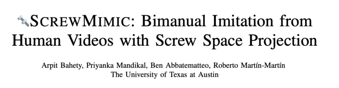 论文标题:ScrewMimic: Bimanual Imitation from Human Videos with Screw Space Projection
