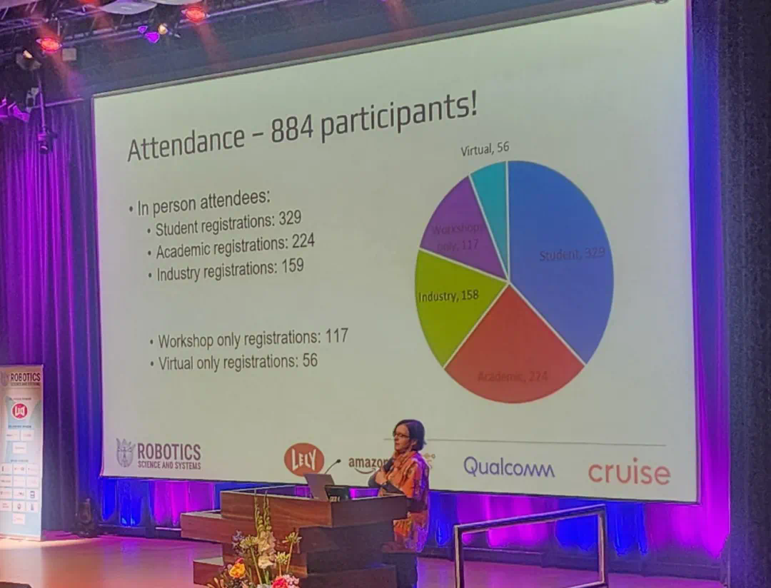 尽管会议规模与 NeurIPS、CVPR 等 AI 顶会无法比肩,但 RSS 在过去几年中取得了长足的发展,今年的参会人数接近 900 人。