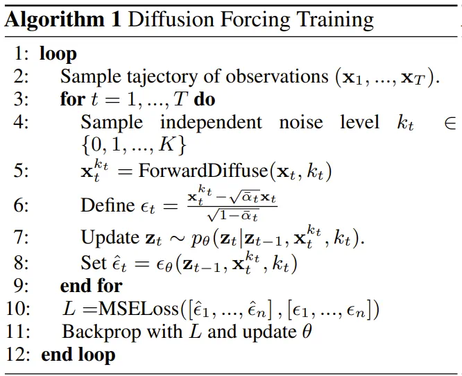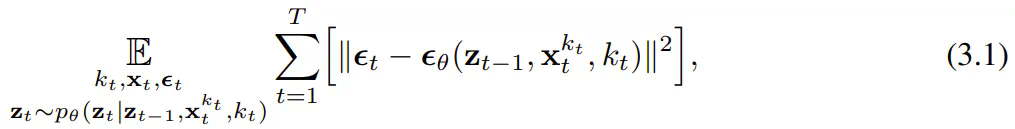 ,其中的关键在于每个 token 的噪声水平 k_t 会随时间步骤而变化。