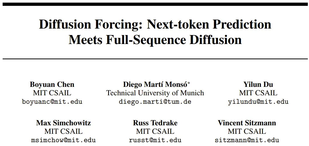 论文标题:Diffusion Forcing:Next-token Prediction Meets Full-Sequence Diffusion
