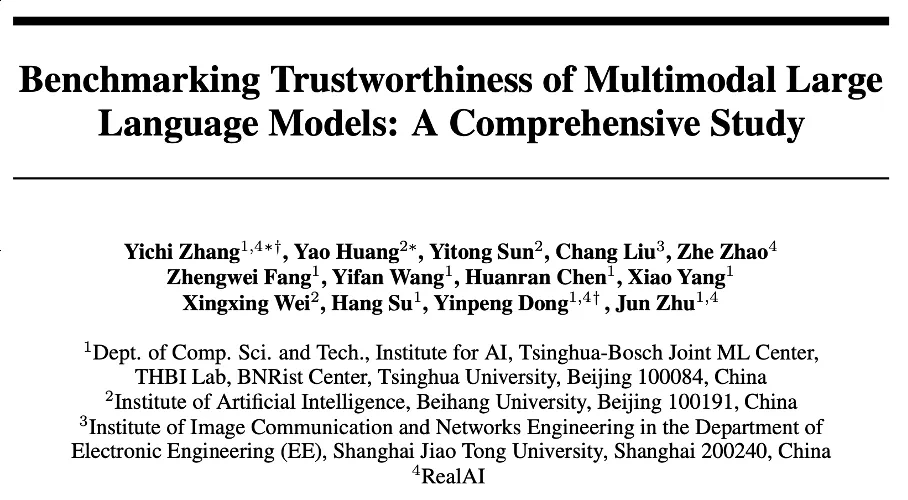 论文标题:Benchmarking Trustworthiness of Multimodal Large Language Models: A Comprehensive Study -