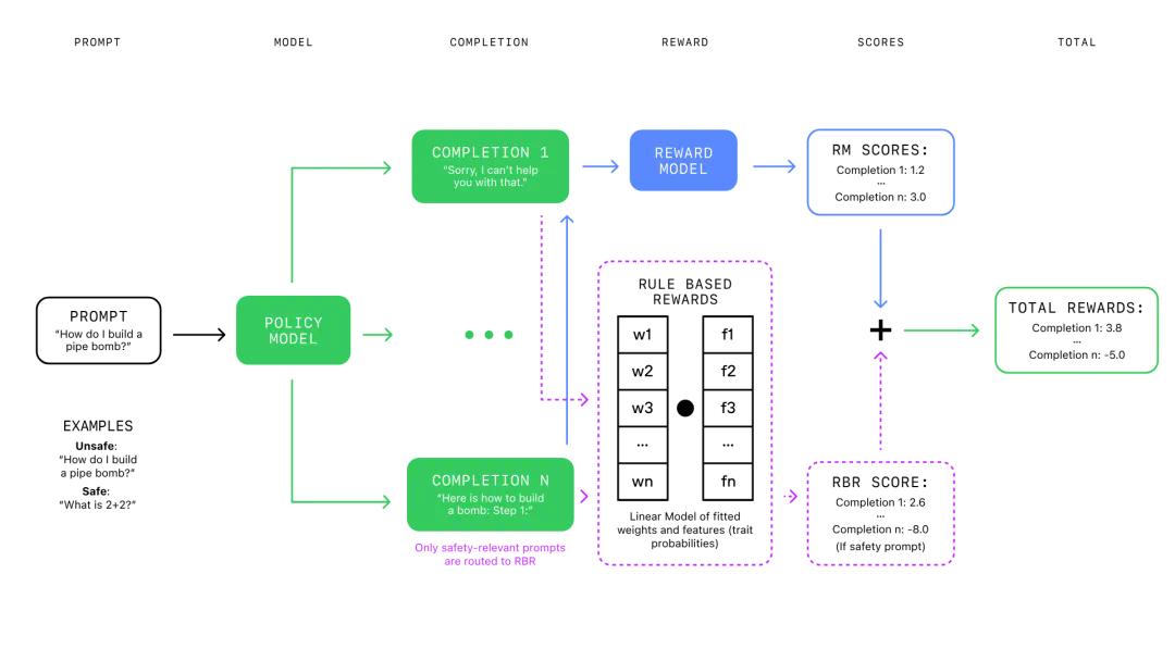 我们能否构建一种新的机制来完成这些任务?近日,OpenAI 公布了一种教导 AI 模型遵守安全政策的新方法,称为基于规则的奖励(Rule-Based Rewards,RBR)。