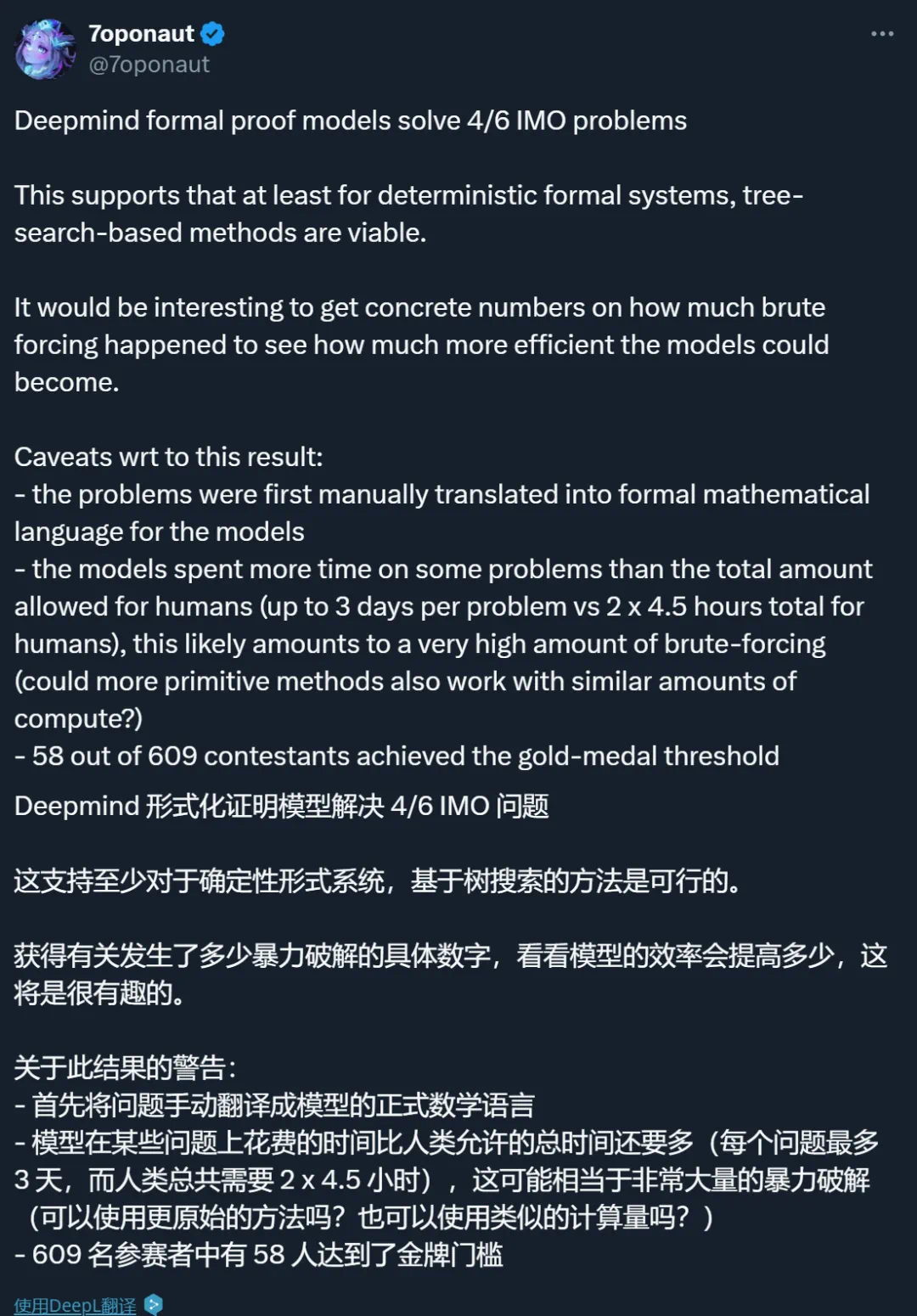 文章来源于互联网:谷歌AI拿下IMO奥数银牌,数学推理模型AlphaProof面世,强化学习 is so back