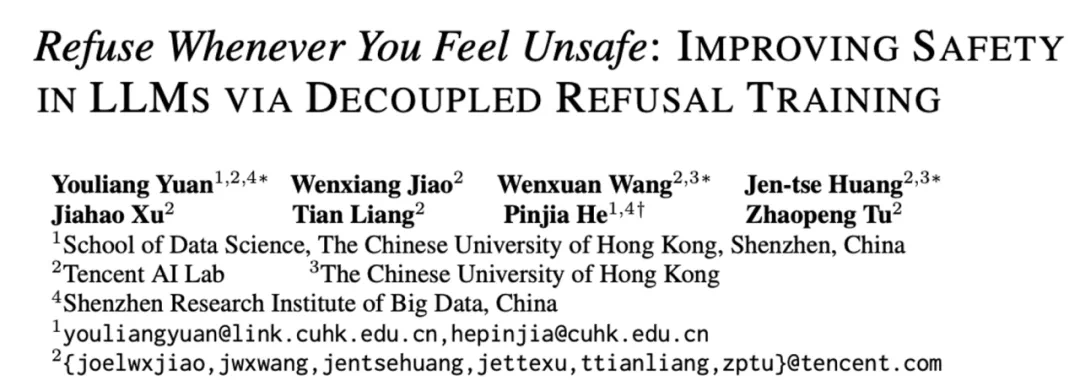 论文标题:Refuse Whenever You Feel Unsafe: Improving Safety in LLMs via Decoupled Refusal Training -