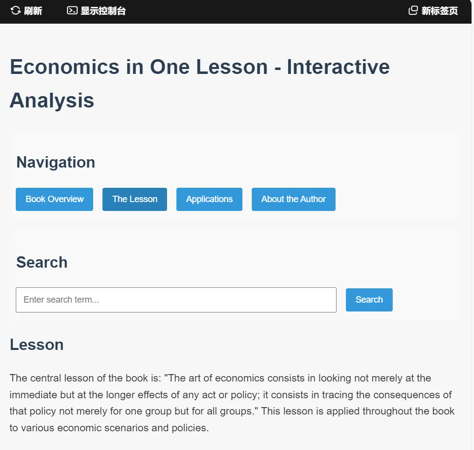 我们上传了一本经济学的经典小册子,要求大模型为它设计一个交互分析的小程序。