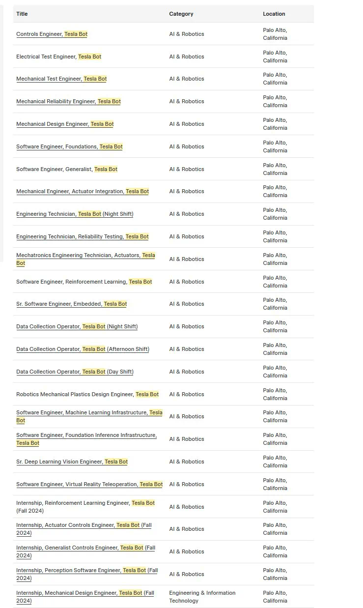 再比如这张特斯拉的岗位招聘表,密密麻麻,看得让人头皮发麻。