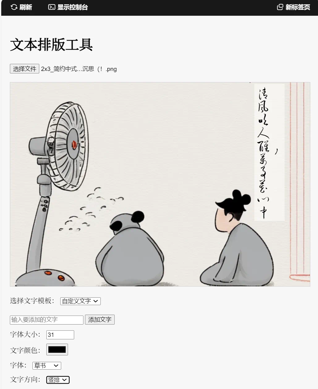 当然,图片是事先准备好的——先用快手可图生了一个类似风格的图,再上传到程序里,配上文字!