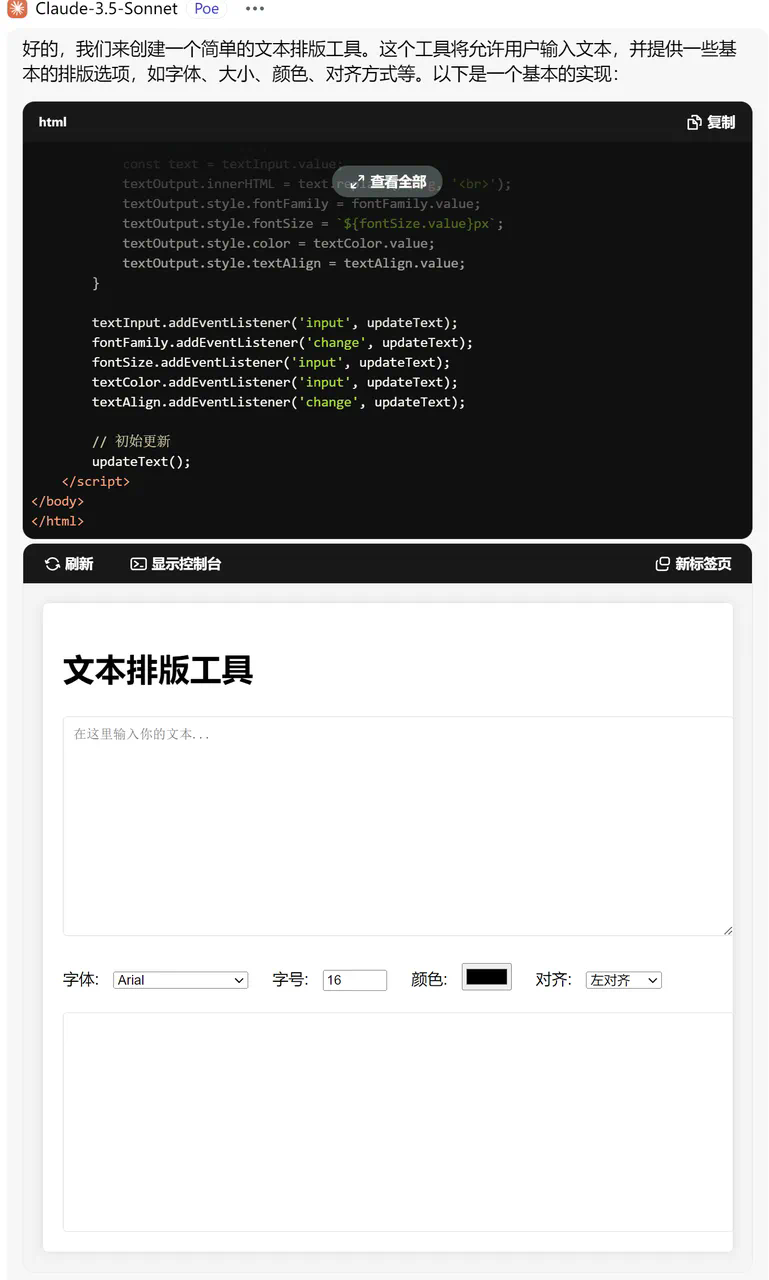 「咱们来做一个文本排版工具,」 编码神器 Claude-3.5-Sonnet 立刻显灵: