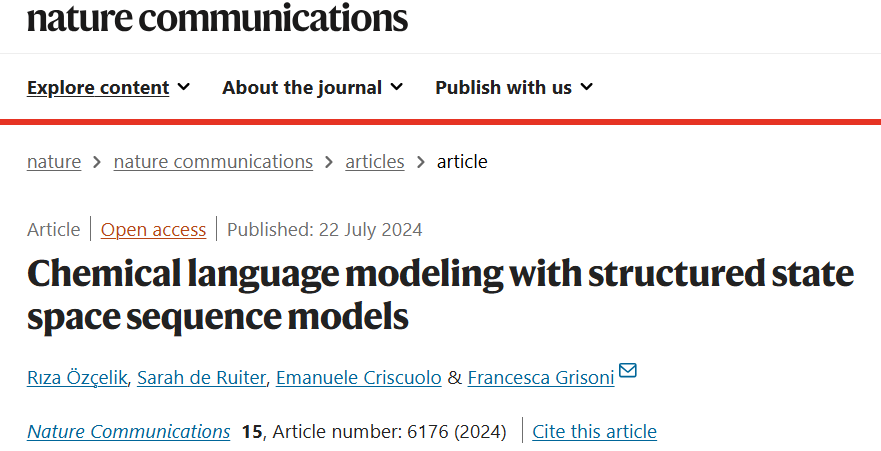 相关研究以「Chemical language modeling with structured state space sequence models」为题,于 7 月 22 日发布在《Nature Communications》上。