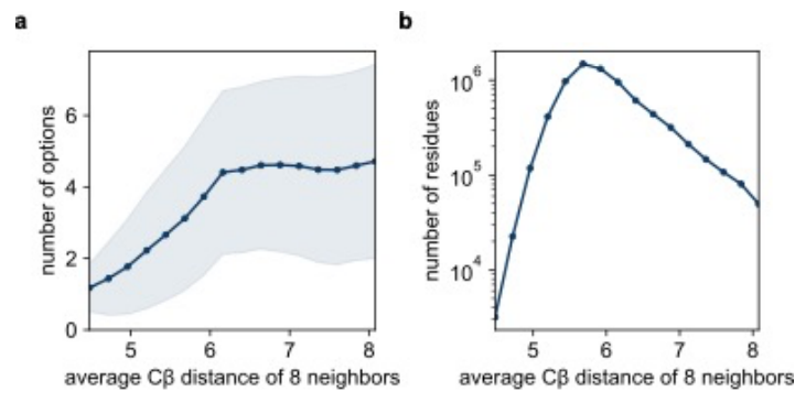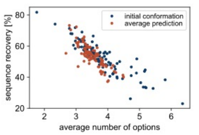 同时,研究人员观察到每个位置预测的可能的氨基酸数量普遍减少,这表明探索构象空间正在限制序列空间,从而使得能够设计有针对性的结构构象。