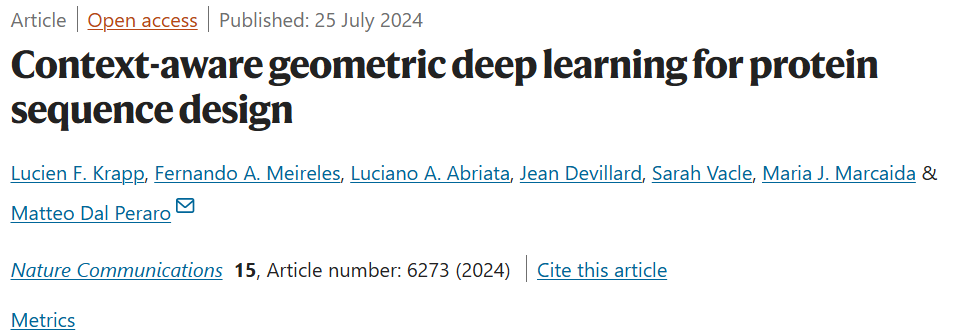 该研究以「Context-aware geometric deep learning for protein sequence design」为题,于 2024 年 7 月 25 日发布在《Nature Communications》。