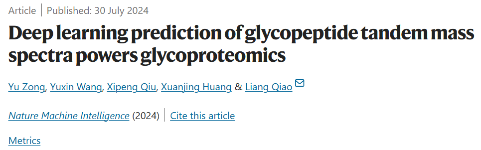 该研究以「Deep learning prediction of glycopeptide tandem mass spectra powers glycoproteomics」为题,于 2024 年 7 月 30 日发布在《Nature Machine Intelligence》。