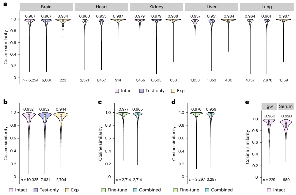 研究人员使用小鼠和人类样本数据集证明了 DeepGP 的 MS/MS 和 RT 预测的高精度。