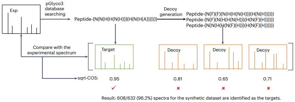 近年来,深度学习在肽 MS/MS 光谱预测方面取得进展。不过,当前糖肽组学数据集的数量相对较少,缺乏标准化的生成糖肽质谱数据的协议,这限制了用于深度学习模型训练的合适数据的可用性。