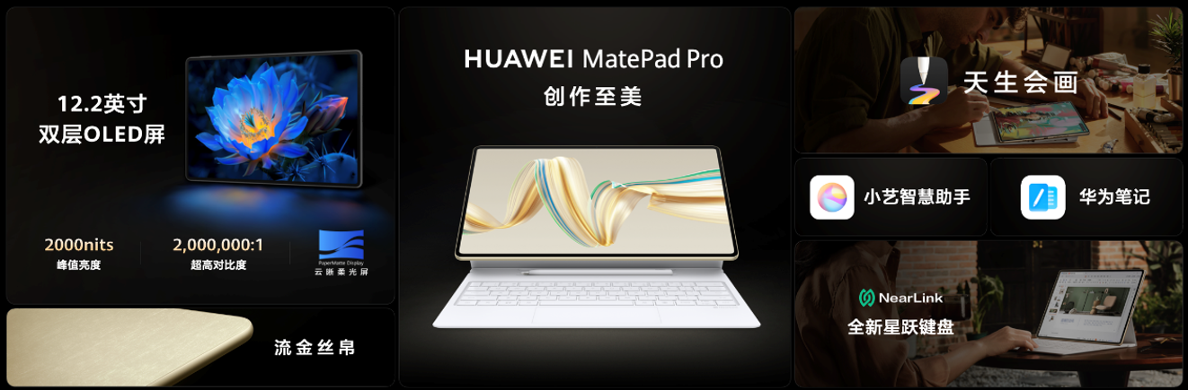 华为 MatePad Pro 12.2 英寸:首发双层 OLED 云晰柔光屏,用好屏创大作