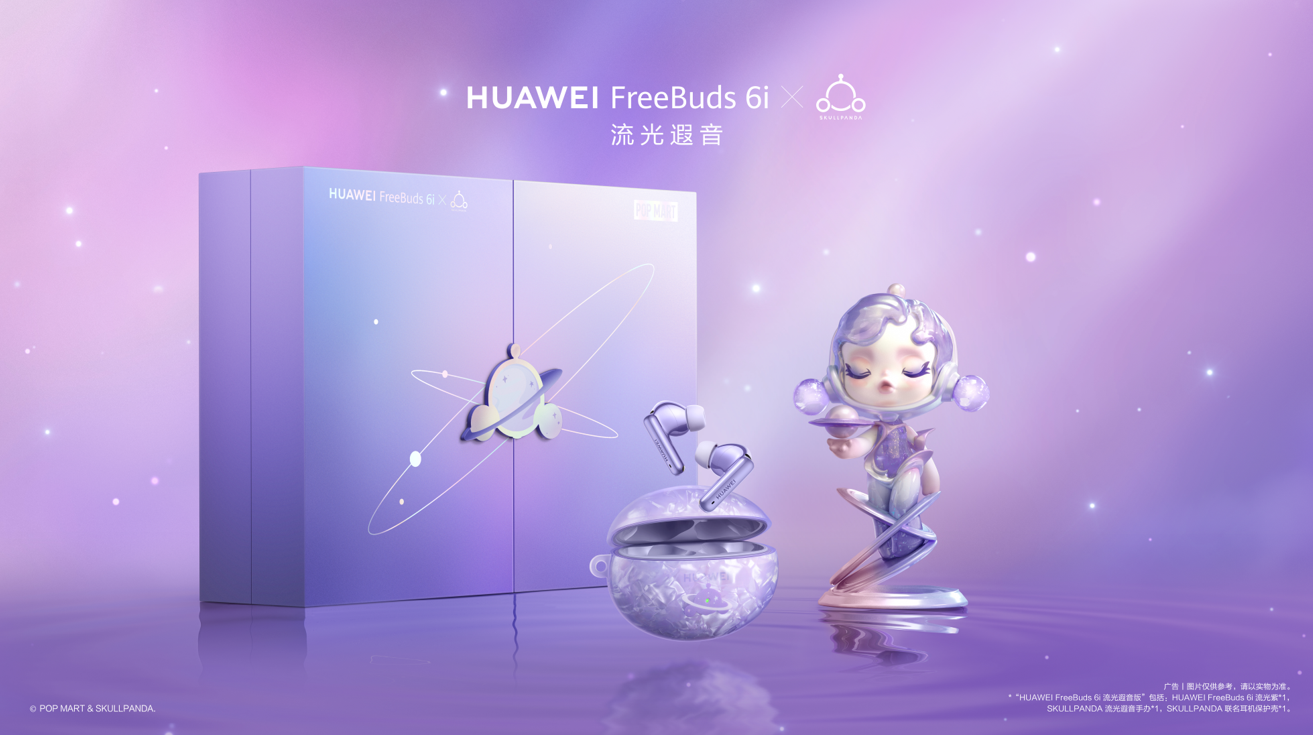 此外,华为 FreeBuds 6i 携手泡泡玛特 SKULLPANDA,带来 “流光遐音” 幻彩礼盒,旨在鼓励用户重新发现安静聆听的力量。值得一提的是,华为商城上线华为 FreeBuds 6i 专属镌刻服务,新增了三款联名镌刻图案。