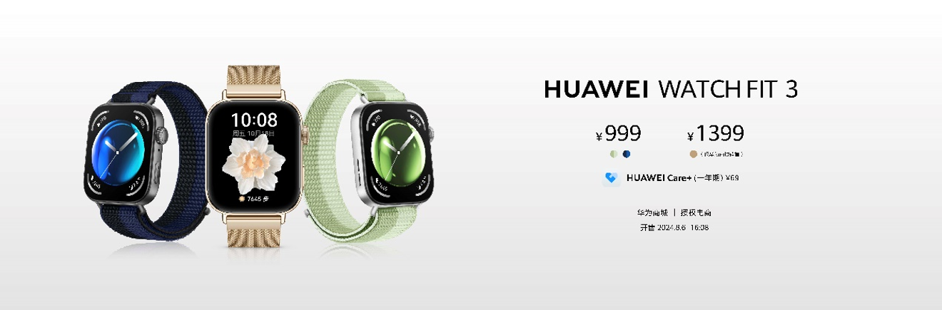 华为 WATCH FIT 3 小方表三款夏日新配色清新来袭,正式售价 999 元起