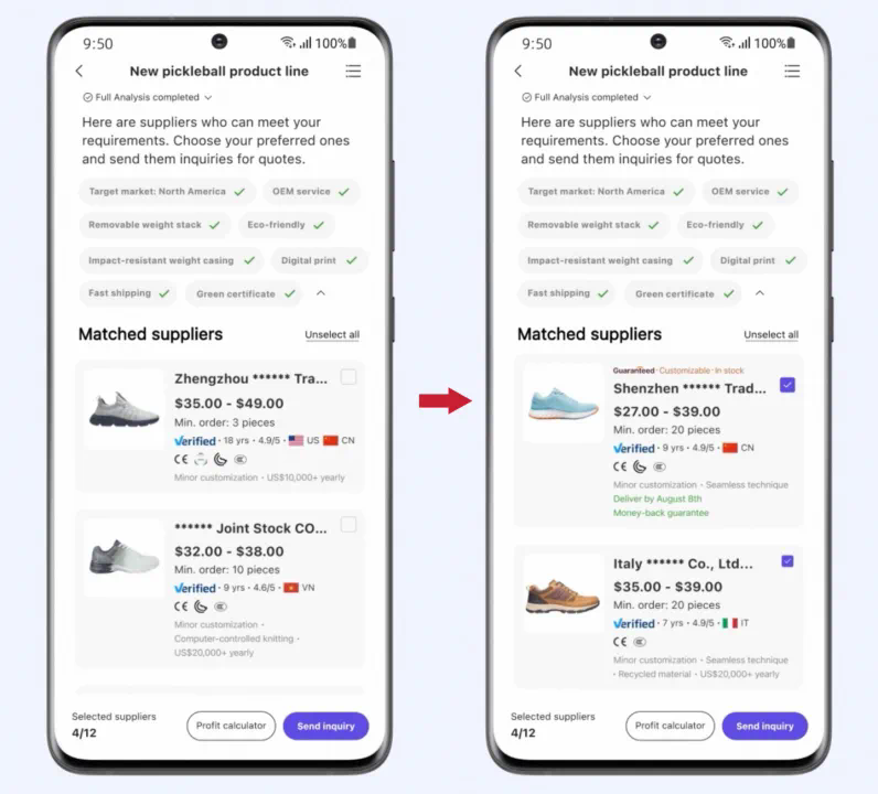 同时,它重构了信息呈现的方式,能主动帮你做信息比较,推荐最合适的供应商。