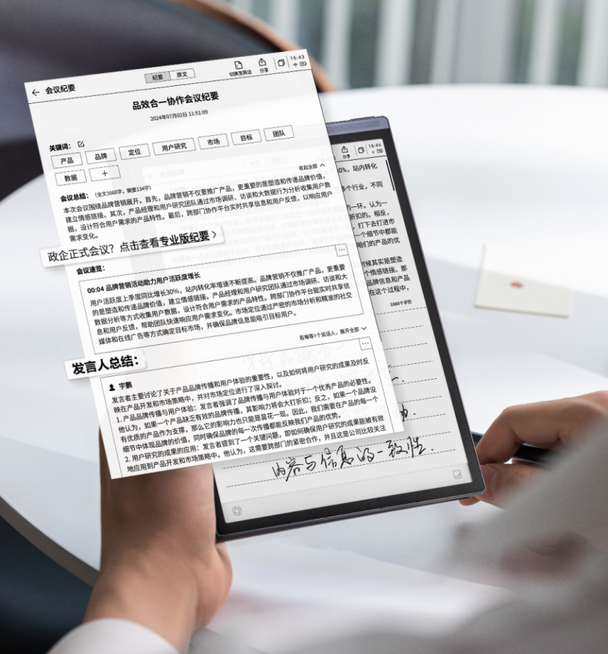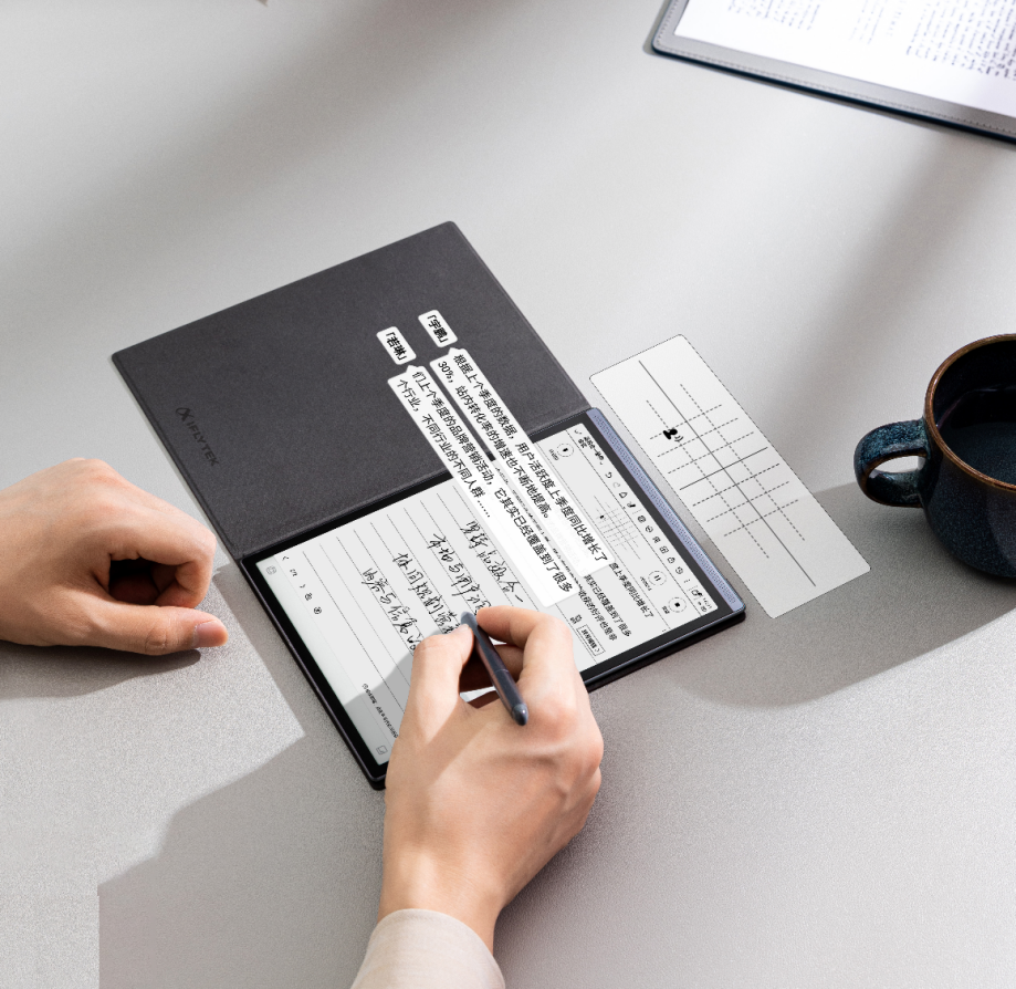 在轻办公等综合能力上,Air 2也在多个功能上进行了更新升级。除了深度适配WPS Office,Air 2还带来了基于办公文档的全新记录体验,Word及PPT文档支持边写边录、一键转文字,在围绕Word文档开会讨论、或是用PPT培训听课时,Air 2可以一边手写、一边录音,并支持录音转文字。专属App读写客帮助用户实现办公本/手机/电脑三端的数据同步,Air 2还新增了读写客手机端拍照插入笔记,实现了录音转写、手写、拍照三合一的记录方式。在日程管理方面,Air 2支持在记录场景下画圈或五角星,自动生成待办或关注事项并汇集到日程,帮助用户更有效的管理时间,借助星火大模型能力,还能够根据日程、待办、笔记等内容AI自动生成工作周报。在阅读听书体验上,Air 2实现了讯飞、京东读书、当当三大书城的深度融合,带来超百万的图书资源选择。依托于星火大模型能力,Air 2支持一句话声音复刻,只需录入一句话,就能用定制化声音听书、听新闻。