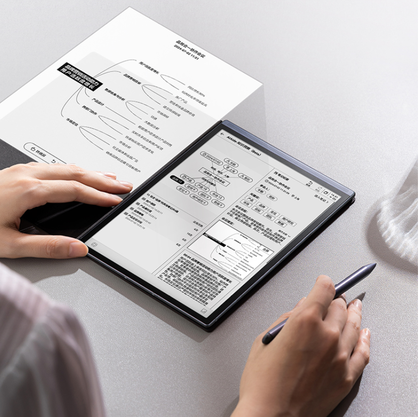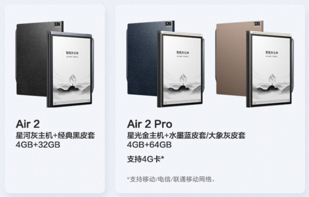 Air 2采用了8.2英寸E Ink墨水屏,并拥有88.5%超大视觉屏占比,同时依然保持了5毫米厚度、230克重量的轻薄体验,在轻薄便携的同时,为用户带来更大的视野体验。Air 2也搭载了办公本家族标志性创新设计——灵动条,这一新颖设计,不仅能给用户带来丝滑顺畅的翻页体验,也提供了更加便捷的大模型交互方式,只需右滑灵动条,就能立刻唤出讯飞星火,进行开放式问答,随时提供知识、灵感等全方位支持。Air 2依然配备了一支Wacom定制磁吸电磁笔,与墨水屏完美搭配,还原出真实纸笔的书写体验。此外,Air 2 Pro也是首款支持4G网络的8.2英寸便携墨水屏设备,无需配网,AI能力随时在线,成为移动办公的好搭档。