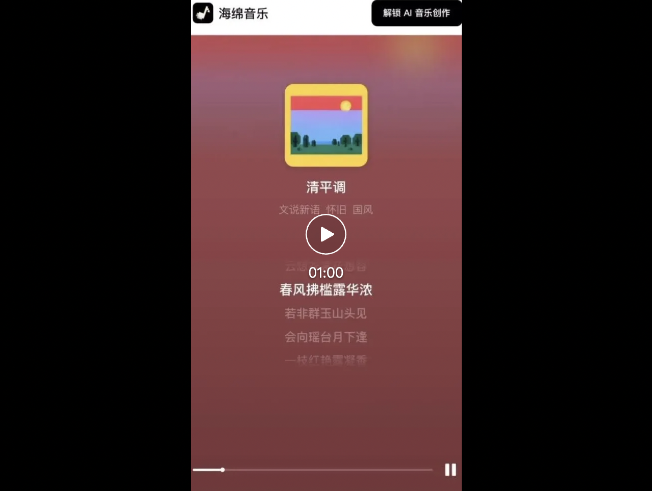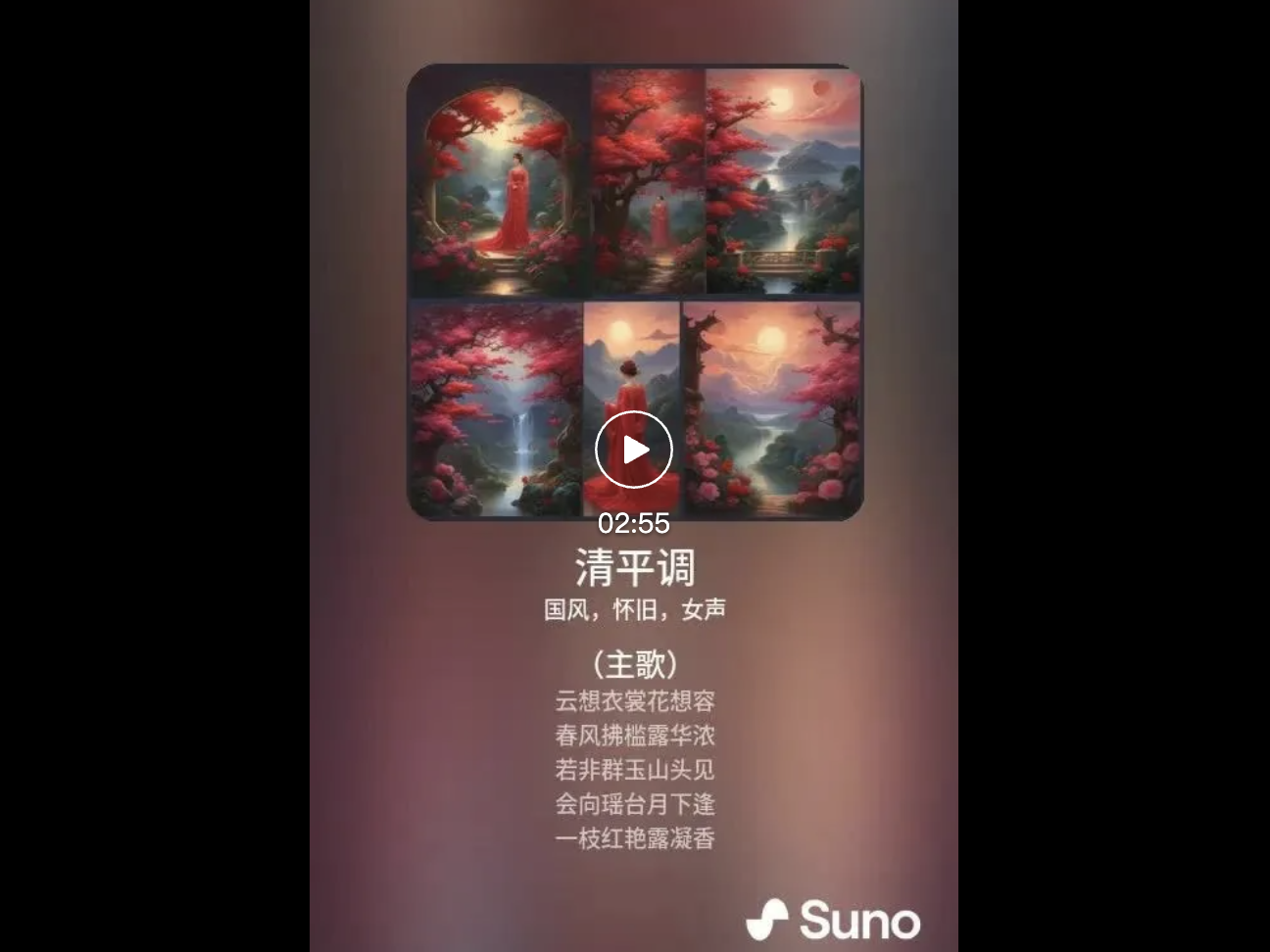 我们输入李白的《清平调》,就是那首著名的「云想衣裳花想容,春风拂槛露华浓。若非群玉山头见,会向瑶台月下逢。」让它们化身古人唱出来。