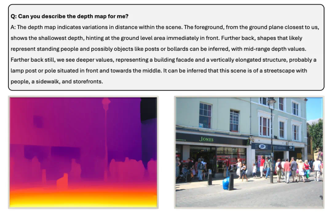 现有模型无法直接理解深度图输入。比如,图像编码器 CLIP/SigLIP 在 RGB 图像上训练,没有见过深度图。 -
