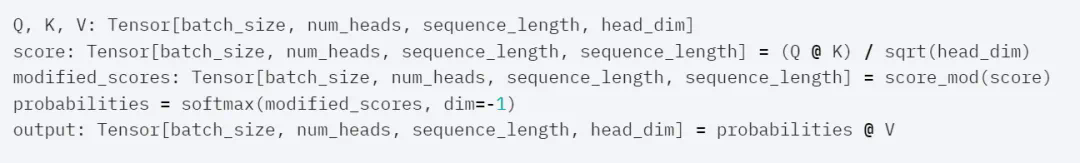 for b in range (batch_size):for h in range (num_heads):for q_idx in range (sequence_length):for kv_idx in range (sequence_length):modified_scores [b, h, q_idx, kv_idx] = score_mod (scores [b, h, q_idx, kv_idx], b, h, q_idx, kv_idx)