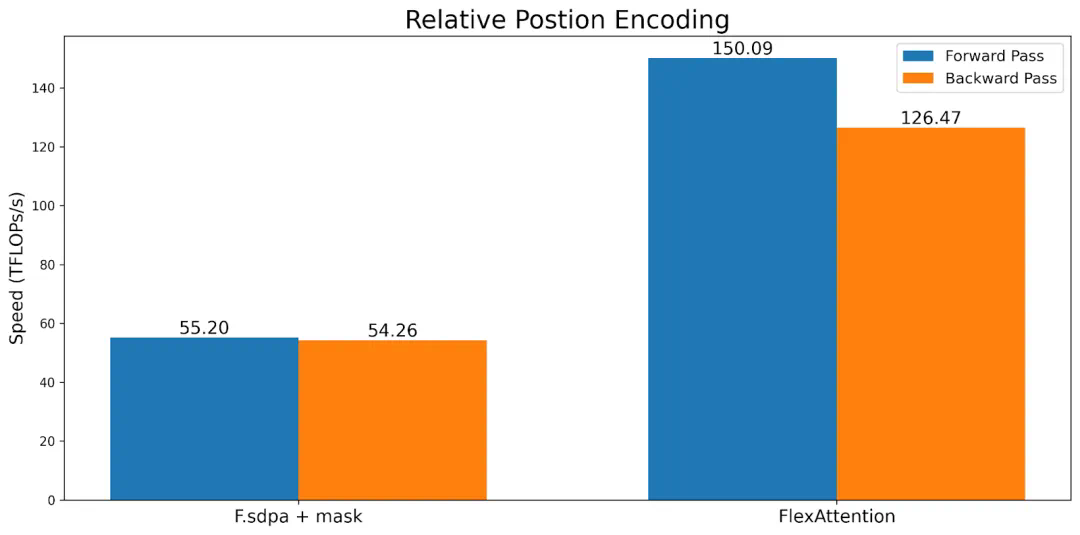 团队人员通过 torch.compile 将其降低到一个融合的 FlashAttention 内核中 ,生成了一个不会占用额外内存且性能可与手写内核相媲美的 FlashAttention 内核。 -
