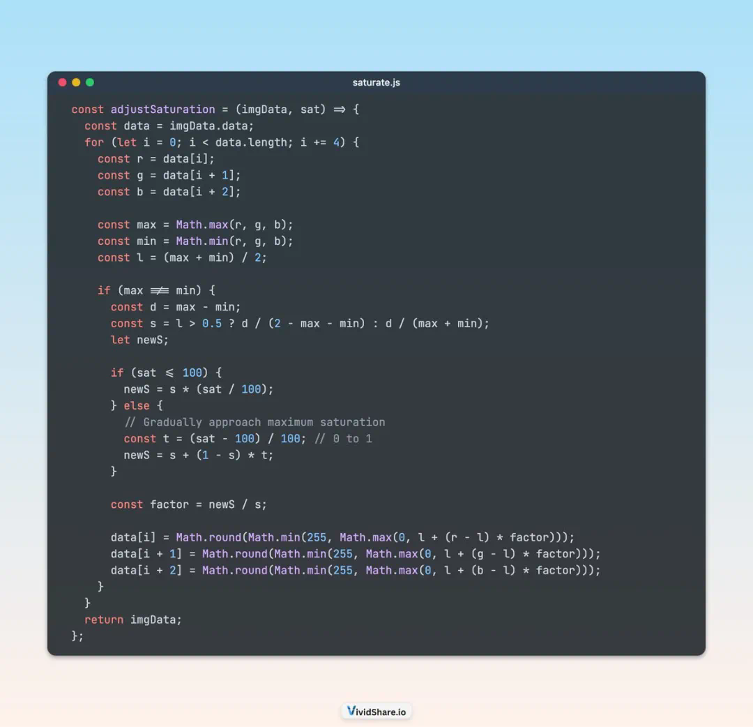 据悉,它直接在原始图像数据上编写了饱和度代码,甚至没有使用任何外部库。