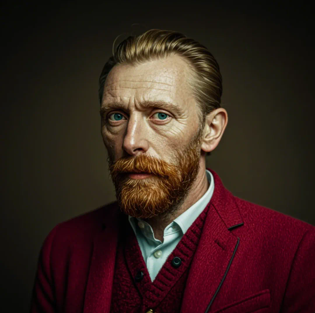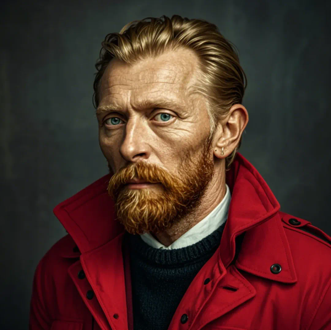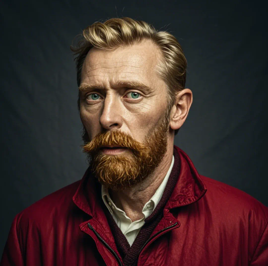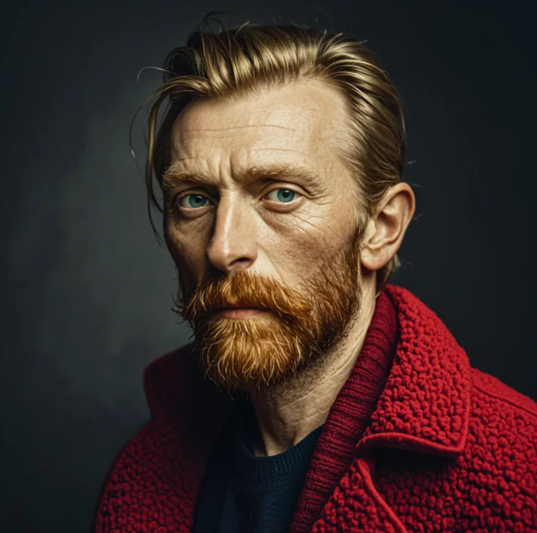 例如,文森特・梵高略带忧郁地抚摸着红色的络腮胡子: