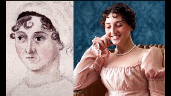 写出《傲慢与偏见》的简・奥斯汀坐在椅子上露出微笑: