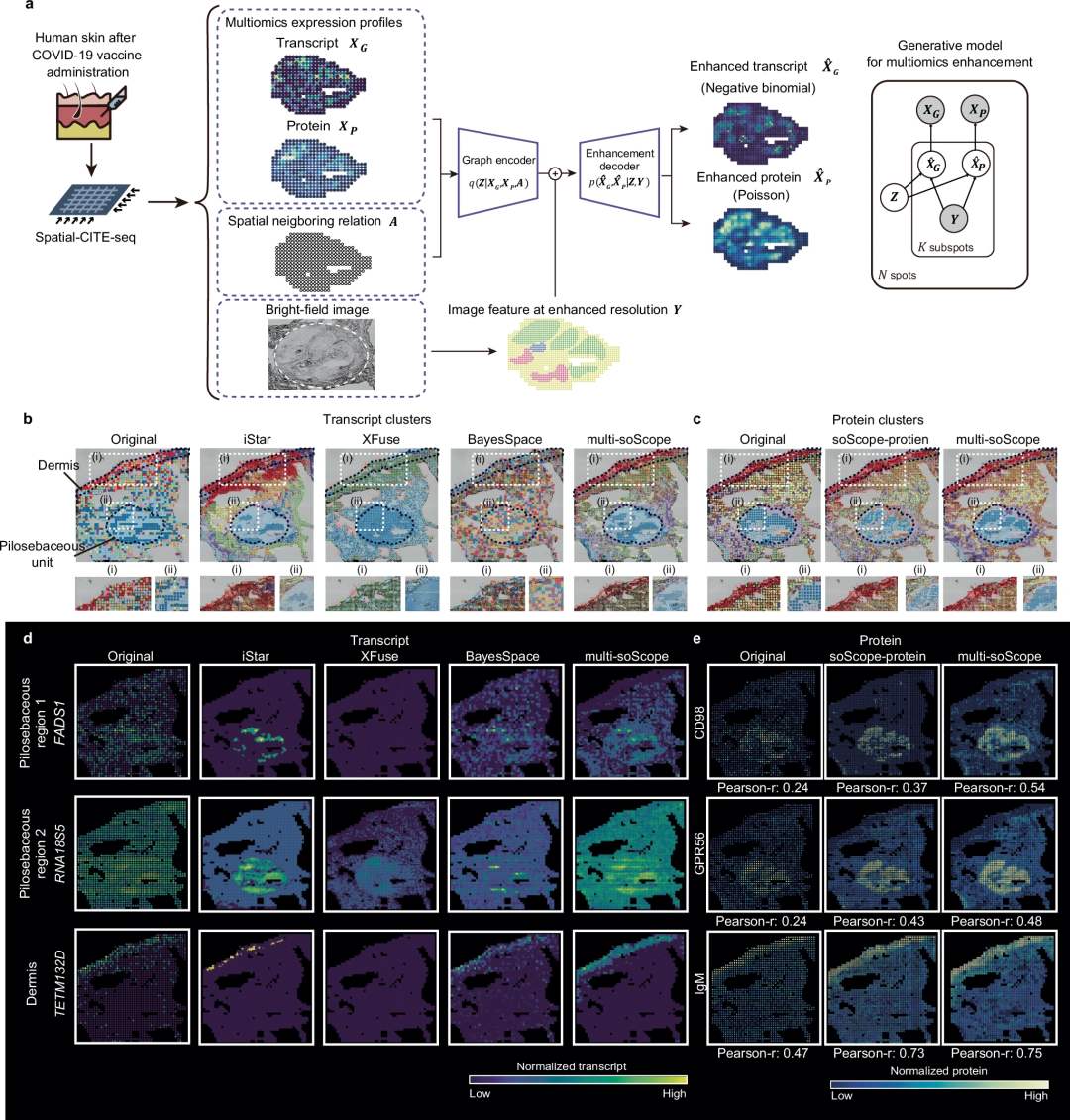 图示:使用空间 CITE-seq 将多组学 soScope 应用于来自人体皮肤组织的空间蛋白质 + 转录数据集。(来源:论文)