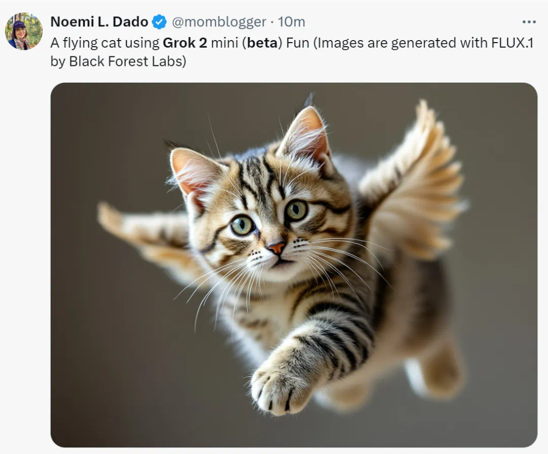 也有人试了试 Grok 2 mini,生成一只飞猫。