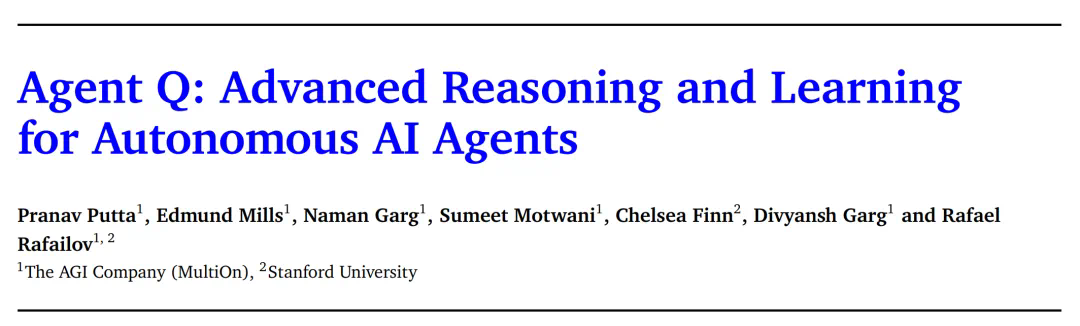 目前,Agent Q 的相关论文已经放出,由 MultiOn 和斯坦福大学的研究者联合撰写。这项研究的成果将在今年晚些时候向开发人员和使用 MultiOn 的普通用户开放。
