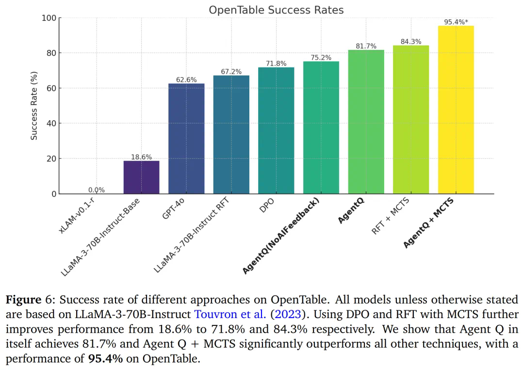 和 AI 自我修复功能的下一代 AI 智能体,Agent Q 的性能是 LLama 3 基线零样本性能的 3.4 倍。同时,在真实场景任务的评估中,Agent Q 的成功率达到了 95.4%。