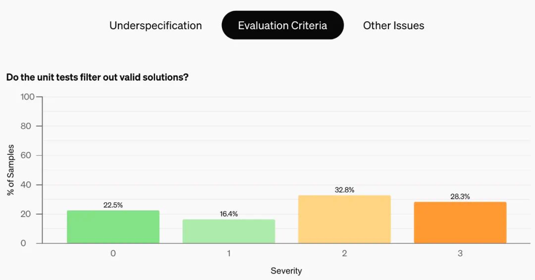 用于评估解决方案正确性的单元测试通常过于具体,有时甚至与问题无关。这可能导致正确的解决方案被拒绝。 -