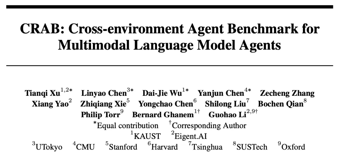跨平台的多模态智能体基准测试 CRAB 由 CAMEL AI 社区主导,由来自牛津、斯坦福、哈佛、KAUST、Eigent AI 等机构的研究人员合作开发。CAMEL AI 社区开发的 CAMEL 框架是最早基于大语言模型的多智能体开源项目,因此社区成员多为在智能体领域有丰富科研和实践经验的研究者和工程师。