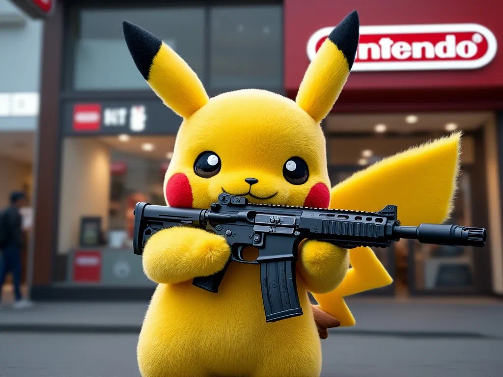 此外,它还会生成一些包含暴力场景以及涉及版权保护的图像。例如,手持冲锋枪的皮卡丘、开枪扫射的米老鼠: