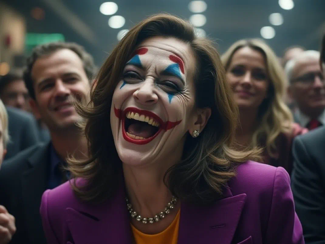 例如,扮作小丑的哈里斯开怀大笑: