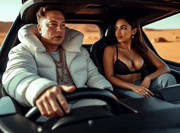戴着大金链子,开着车与美女谈笑风生的马斯克: