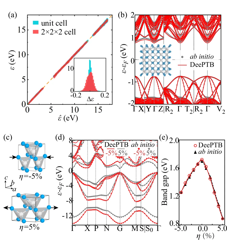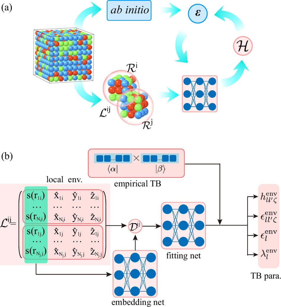 北京科学智能研究院 (AI for Science Institute, Beijing) 提出了一种基于深度学习的高效紧束缚方法,称为 DeePTB,从而高效地表示具有从头算精度的材料电子结构,极大地简化了计算复杂度,并实现百万级大尺寸结构的电子、光电响应性质的计算模拟。