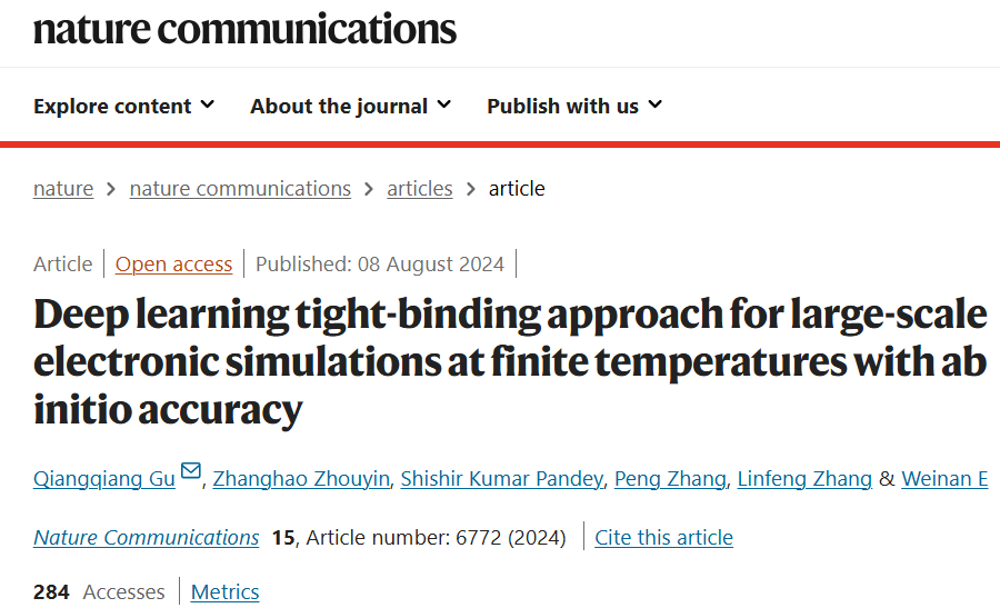 相关研究以「Deep learning tight-binding approach for large-scale electronic simulations at finite temperatures with ab initio accuracy」为题,于 8 月 8 日发表在《Nature Communications》上。